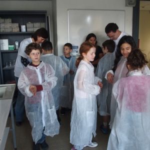 Deux classes de CM2 de Grenoble et une classe de Seyssins nous ont rendu visite pour 2h d’animation. Après une courte introduction au monde du vivant, les classes étaient scindées en 3, chaque groupe participant à l’un des trois ateliers suivants : protéines fluorescentes, ADN de banane et découvertes des protéines (atelier que nos scientifiques avaient fait évoluer par rapport aux autres années de manière à proposer davantage de manipulations aux enfants). Une douzaine de scientifiques de l’IBS ont animé cette opération pendant 2 jours, pour le plus grand plaisir de quatre-vingt enfants, qui sont repartis enthousiastes.