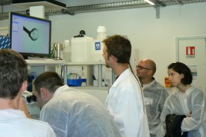 Le 18 octobre, deux visites guidées étaient organisées sur le Campus EPN. A l’IBS, la visite "Au coeur des molécules du vivant" mise au point par des volontaires de l’IBS, l’EMBL, l’UVHCI et l’ESRF a vu défiler environ 140 personnes. Trois ateliers sur la résonance magnétique nucléaire, la microbiologie et la cristallographie ont permis aux visiteurs de mieux comprendre le but de nos recherche et s’exercer à reproduire quelques manipulations habituelles dans nos laboratoires. Une visite guidée de l’ESRF et l’ILL était également possible et un chapiteau à l’entrée du site permettait aussi aux visiteurs de tous ages de s’initier à la cristallgraphie.