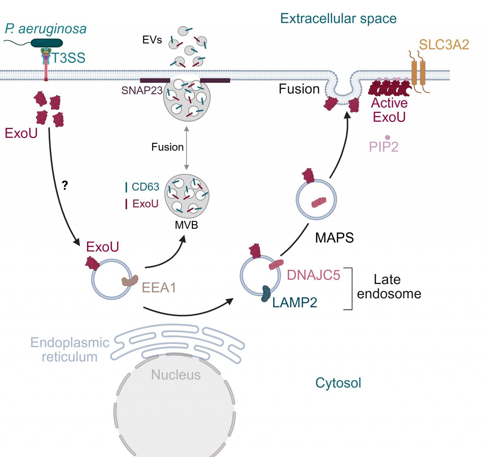 Figure 2 : ExoU injection and trafficking within cells (created in https://BioRender.com)